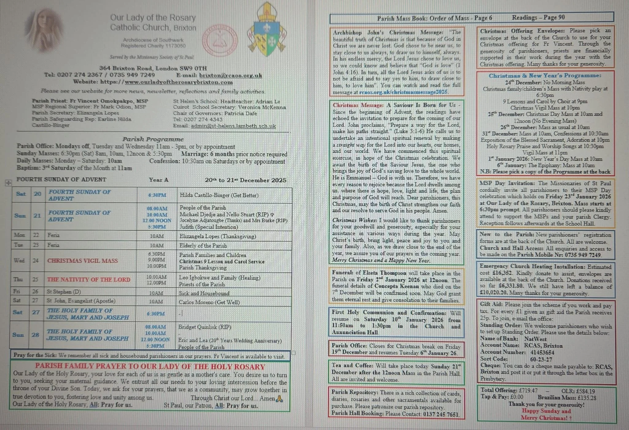 Fourth Sunday of Advent (Year A) 21st December 2025 December 18, 2025 Amanda Brefo CLICK TO VIEW NEWSLETTER Subscribe to our parish newsletter to receive news and updates straight to your inbox! Subscribe