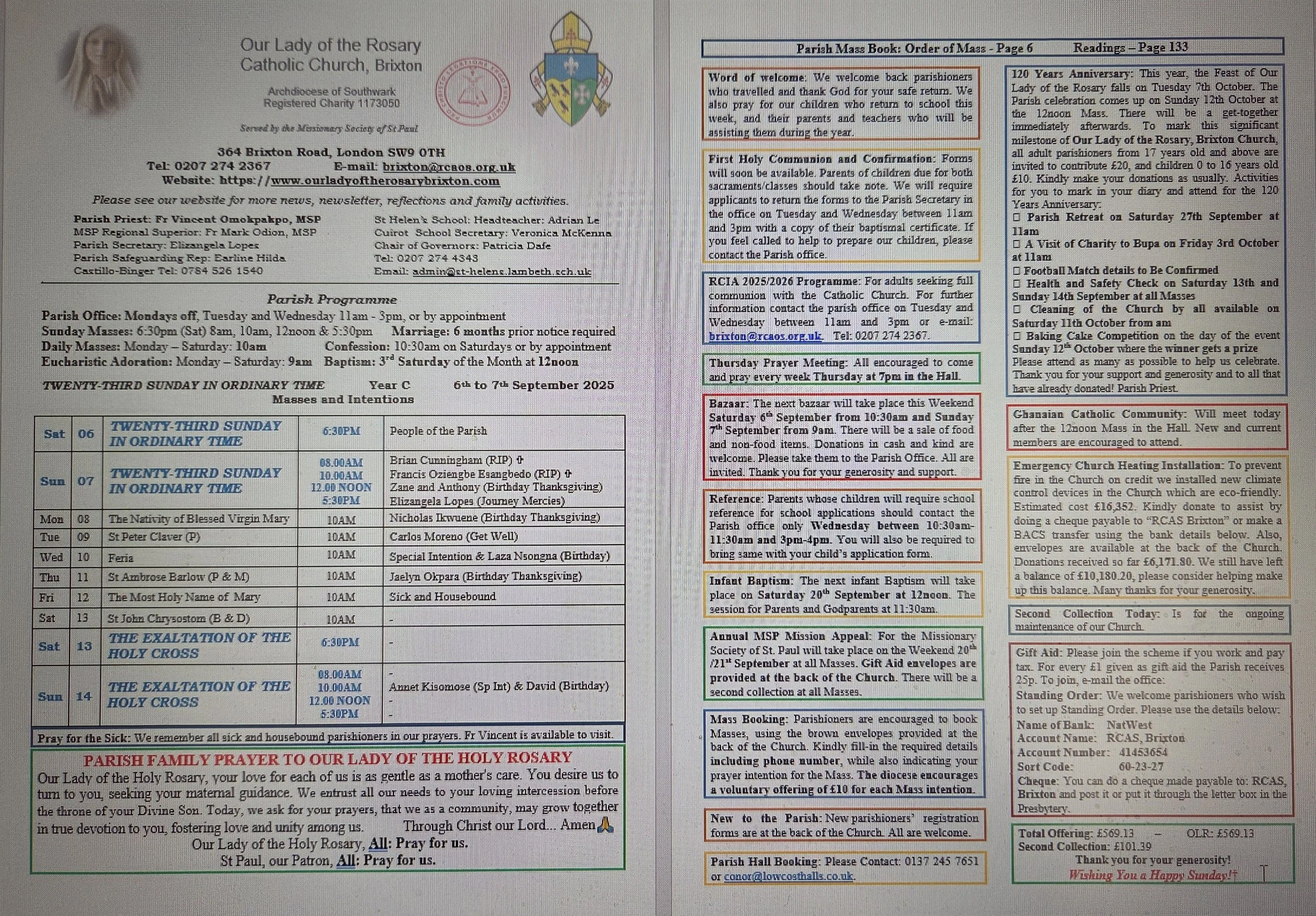 Twenty-Fifth Sunday of Ordinary Time (Year C) 21st September 2025 September 18, 2025 Amanda Brefo CLICK TO VIEW NEWSLETTER Subscribe to our parish newsletter to receive news and updates straight to your inbox! Subscribe