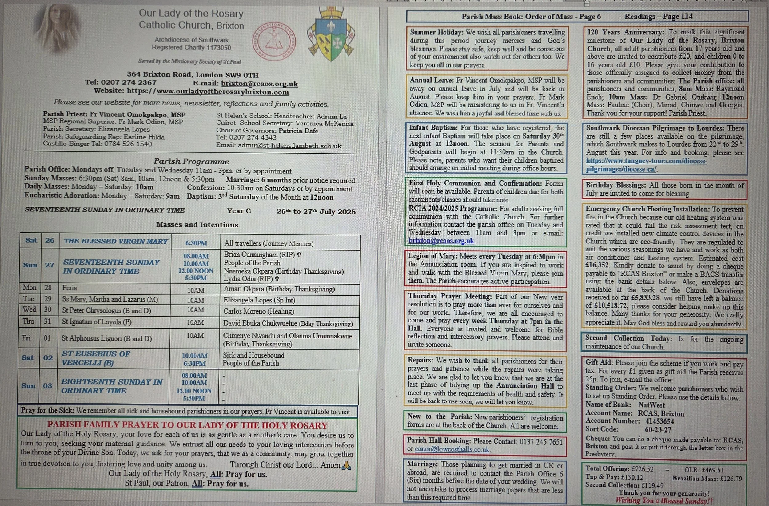 Seventeenth Sunday in Ordinary Time (Year C) 27th July 2025 July 24, 2025 Amanda Brefo CLICK TO VIEW NEWSLETTER Subscribe to our parish newsletter to receive news and updates straight to your inbox! Subscribe