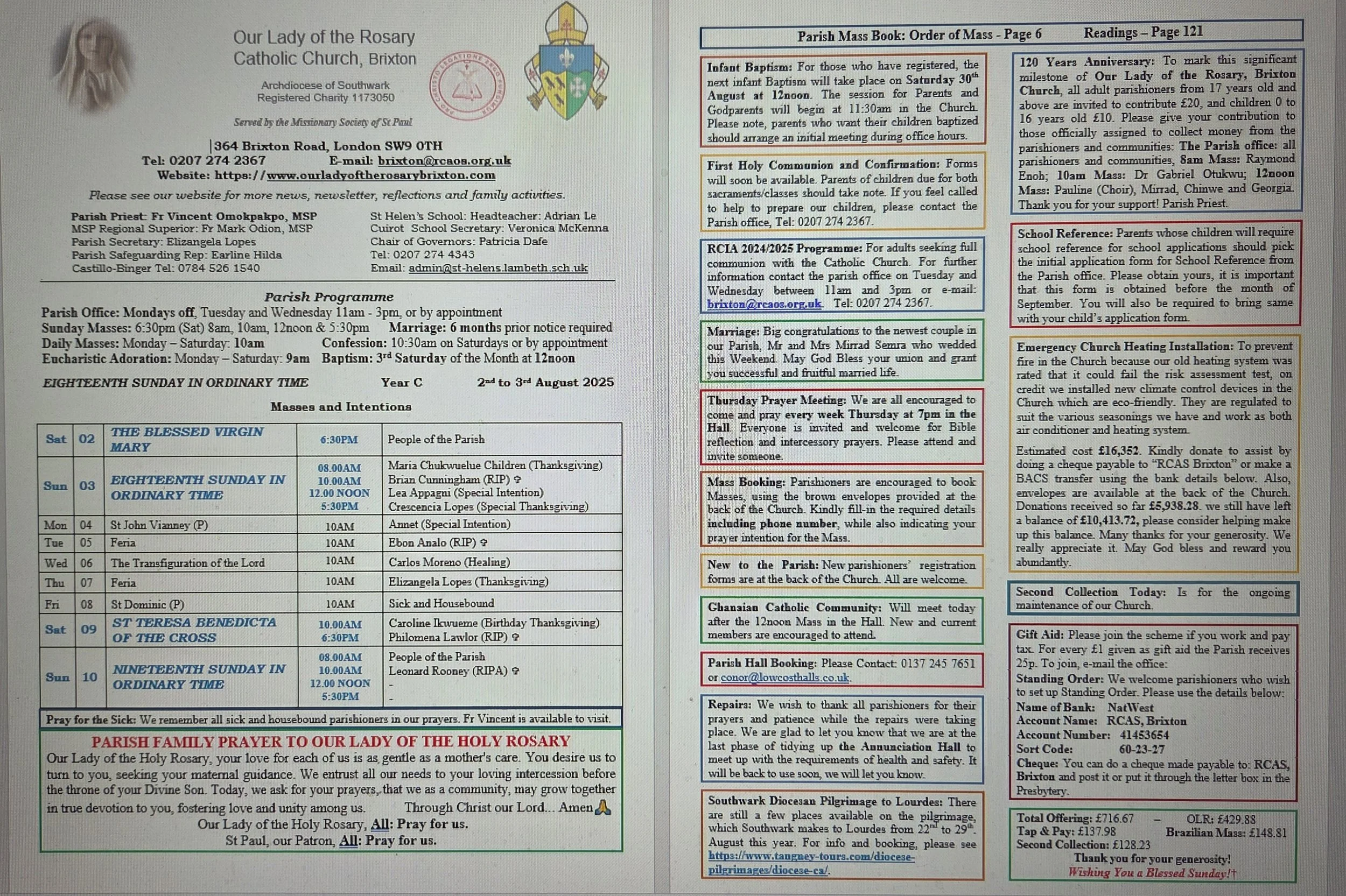 Eighteenth Sunday in Ordinary Time (Year C) 3rd August 2025 August 5, 2025 Amanda Brefo CLICK TO VIEW NEWSLETTER Subscribe to our parish newsletter to receive news and updates straight to your inbox! Subscribe